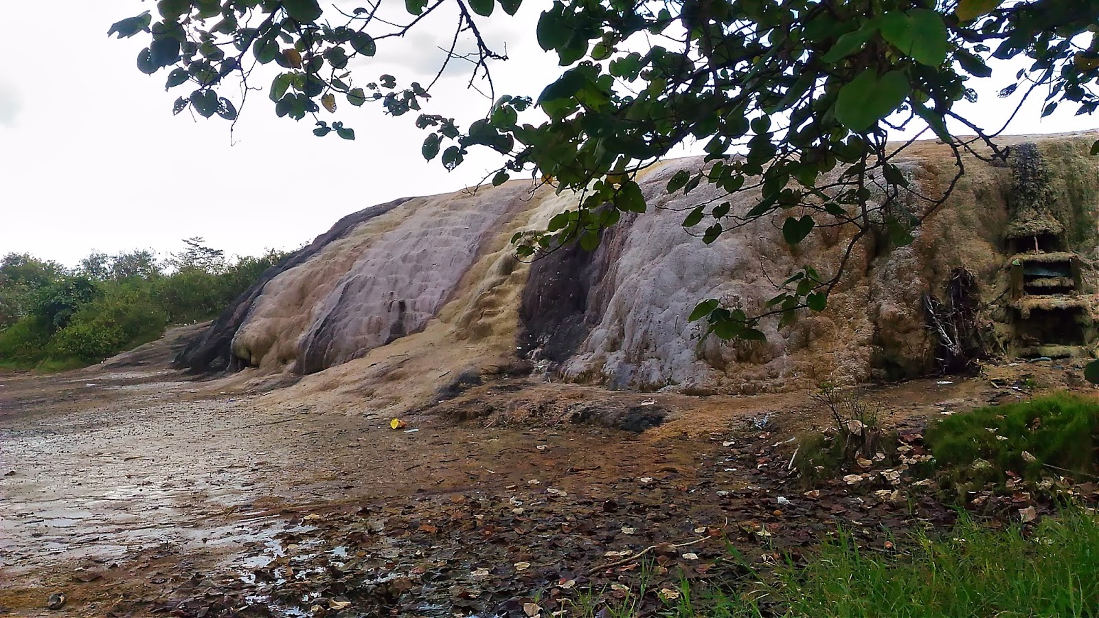 Jangan dikira kalau Gunung Peyek tuh gedenya seperti Gunung Salak atau gunung-gunung pada umumnya ya, hanya sebuah bukit yang bentuknya mirip-mirip stalaktit gitu trus warnanya keputihan. Setelah berjalan kurang lebih 15 menit dari wisata Tirta Sanita, kitapun akhirnya sampai di Gunung Peyek! Oh ya waktu itu pengunjungnya hanya kita bertiga aja lho, ga ada orang lain. Kolam Jacuzzi nya ini cukup ini, bau belerangnya kuat banget, tapi gak panas, beneran gak panas, cenderung anget malah.